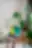 MacBook mockup on a wooden table with flower pot